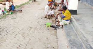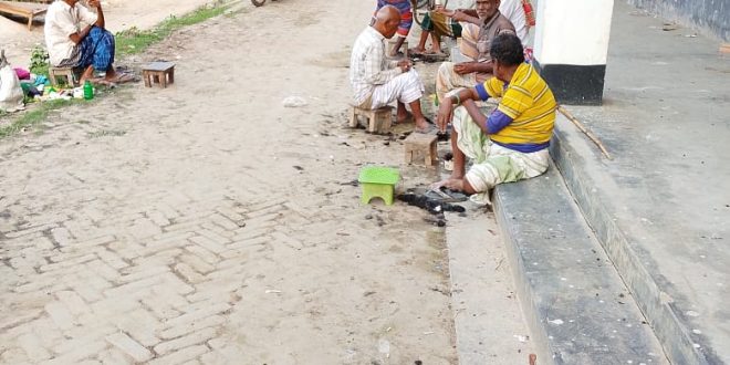 হাটে টুলের উপর চুলদাঁড়ি কাটা নাপিতর মানবতার জীবন যাপন