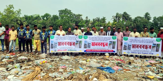 নন্দকুজাকে দখল ও দুষণমুক্ত করতে মানববন্ধন