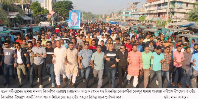 আরাফাত হোসেন, নন্দীগ্রাম (বগুড়া) প্রতিনিধিঃ- ২১আগস্ট গ্রেনেড হামলা মামলায় বিএনপির ভারপ্রাপ্ত চেয়ারম্যান তারেক রহমান সহ বিএনপির নেতাকর্মীরা বেকসুর খালাস পাওয়ায় নন্দীগ্রাম উপজেলা ও পৌর বিএনপির আনন্দ মিছিল অনুষ্ঠিত হয়েছে। রবিবার (১লা ডিসেম্বর) বিকেল ৩টায় বিএনপির দলীয় কার্যালয় থেকে একটি বিশাল মিছিল বের হয়। মিছিলটি পৌর শহরের বিভিন্ন সড়ক প্রদক্ষিণ করে নন্দীগ্রাম বাসস্ট্যান্ডে এসে শেষ হয়। এরপর নন্দীগ্রাম উপজেলা বিএনপির সভাপতি মোঃ আলাউদ্দিন সরকারের সভাপতিত্বে এক আলোচনা সভা অনুষ্ঠিত হয়। উক্ত সভায় বক্তব্য রাখেন, উপজেলা বিএনপির সাধারণ সম্পাদক বেলায়েত হোসেন আদর, সাংগঠনিক সম্পাদক আব্দুল হাকিম, ইয়াছিন আলী, পৌর বিএনপি’র সভাপতি আলেকজান্ডার, সাধারণ সম্পাদক কে এম শফিউল আলম সুমন, সাংগঠনিক সম্পাদক মোঃ গোলাম হোসেন, এনামুল হক বাচ্চু, যুগ্ম-সম্পাদক রেজাউল করিম, নন্দীগ্রাম সদর ইউনিয়ন বিএনপি’র সভাপতি মোঃ আবু বক্কর সিদ্দিক এল আর, সাধারণ সম্পাদক মোঃ মাহবুবুল আলম, সাংগঠনিক সম্পাদক সহকারী অধ্যাপক মোঃ সুলতান মাহমুদ, ভাটরা ইউনিয়ন বিএনপি’র সভাপতি মোঃ শাহ আল হেলাল, সাধারণ সম্পাদক মোঃ শফিকুল ইসলাম, থালতা মাঝগ্রাম ইউনিয়ন বিএনপি’র সভাপতি মাসুদ রানা, সাধারণ সম্পাদক মোঃ নজরুল ইসলাম, ভাটগ্রাম ইউনিয়ন বিএনপির সাধারণ সম্পাদক ও ইউপি সদস্য মোঃ আবু হাসেম, বুড়ইল ইউনিয়ন বিএনপি’র সাংগঠনিক সম্পাদক মোঃ মশিউর রহমান মশি, উপজেলা যুবদলের সিঃ যুগ্ম-আহবায়ক মোঃ আঃ রউফ রুবেল, যুগ্ম-আহবায়ক মোঃ আরিফুল ইসলাম মজনু, মোঃ জাহাঙ্গীর আলম (সবুজ), পৌর যুবদলের আহবায়ক মোঃ গোলাম রব্বানী, যুগ্ম-আহবায়ক মোঃ মেহেদী হাসান শাহিন, উপজেলা স্বেচ্ছাসেবক দলের আহবায়ক মোঃ আবু বক্কর সিদ্দিক রঙিন,যুগ্ম আহবায়ক মতিউর রহমান মুসা, ভারপ্রাপ্ত সদস্য সচিব আ: হাকিম রিন্টু, পৌর স্বেচ্ছাসেবকদলের যুগ্ম-আহবায়ক তারেক, সদস্য সচিব রাব্বী, উপজেলা মহিলা দল নেত্রী রেশমা আরা সাথী, উপজেলা ছাত্রদলের সভাপতি মোঃ জুয়েল রানা, সিনিয়র সহ-সভাপতি নবীর শেখ, সাধারণ সম্পাদক মোস্তাফিজুর রহমান তারেক, সাংগঠনিক সম্পাদক মেহেদী হাসান, যুগ্ম-সম্পাদক শাহীন শেহজাদ, পৌর ছাত্রদলের সভাপতি মোঃ রাকিবুল হাসান পলিন, সাধারণ সম্পাদক মোঃ নূরনবী,সাংগঠনিক সম্পাদক আল-আমিন নন্দীগ্রাম মনসুর হোসেন ডিগ্রি কলেজ ছাত্রদলের সভাপতি মোঃ শাকিল হোসেন প্রমূখ।