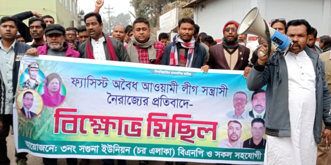 এ দিকে ফ্যাসিস্ট অবৈধ আওয়ামীলীগের বিভিন্ন ষড়যন্ত্র ও সন্ত্রাসী কর্মকান্ডের প্রতিবাদে সকালে বাংলাদেশ জামায়াতে ইসলামী তাড়াশ উপজেলা শাখার আমীর সাখলাইন হোসেন ও সাধারণ সম্পাদক শাহজাহান আলীর নেতৃত্বে এক বিক্ষোভ মিছিল বের হয়।