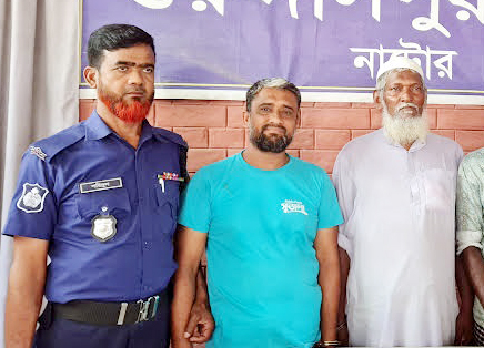 নাটোরের গুরুদাসপুরের চাপিলা ইউনিয়ন বিএনপির সাবেক সাংগঠনিক সম্পাদক শামীম হোসেন (৪৩) ও তার সহযোগি আবুল কালামকে (৬৫) গ্রেপ্তার করেছে যৌথবাহিনী। সোমবার সকালে উপজেলার মকিমপুর নিজ বাড়ি থেকে তাদের গ্রেপ্তার করা হয়।