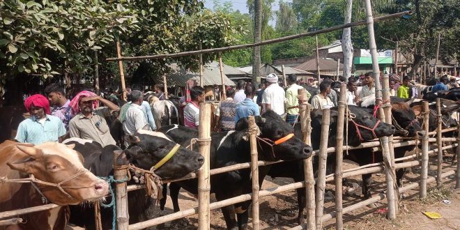 সিরাজগঞ্জের তাড়াশের বৃহত্তম নওগাঁ হাটে কোরবানির পশু বেচা-কেনায় মাত্রা অতিরিক্ত খাজনা আদায় করা হচ্ছে বিগত বেশ কয়েক বছর ধরে। এ ছাড়াও সারা বছর অতিরিক্ত খাজনা আদায় করা হয় গরু-ছাগল ও নিত্য প্রয়োজনীয় পণ্য বেচা-কেনায়। বিশেষ করে কোরবানির পশু কেনা-বেচায় চরম বিড়ম্বনার মধ্যে পড়তে হয় ক্রেতা ও বিক্রেতাকে।এদিকে কোরবানির হাটে অতিরিক্ত খাজনা আদায় বন্ধে সিরাজগঞ্জ জেলা প্রশাসক মুহাম্মদ নজরুল ইসলাম বরাবর লিখিত অভিযোগ দিয়েছেন স্থানীয়রা।