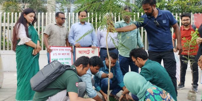 তরুণদের ধ্বংসে সিগারেট কোম্পানির অপচেষ্টা সম্পর্কে সচেতন করতে আজ শনিবার (১২ জুলাই২০২৫) রাজধানীর আগারগাঁওয়ে জাতীয় রাজস্ব বোর্ডের সামনে আয়োজিত এক বিশেষ বৃক্ষরোপন কর্মসূচিতে জনস্বাস্থ্য বিশেষজ্ঞগণরা এই অভিমত তুলে ধরেন। “পাবলিক প্লেসে ধূমপানের স্থান নয়, গাছ লাগানোর আহবান” এই স্লোগানে আয়োজিত এ কর্মসূচিতে পরিবেশ ও জনস্বাস্থ্যের সুরক্ষায় বৃক্ষরোপনের বার্তা তুলে ধরতেই এ কর্মসূচির আয়োজন করা হয়।