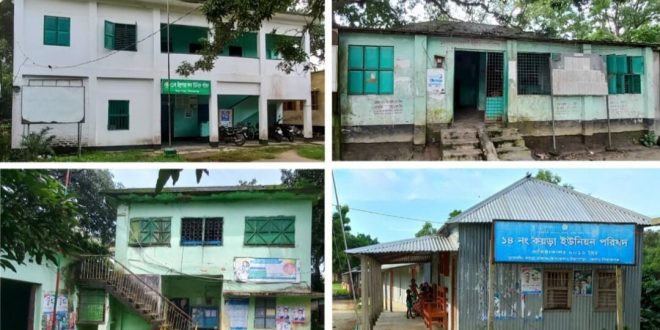 সিরাজগঞ্জের উল্লাপাড়ায় চারটি ইউনিয়ন পরিষদের (ইউপি) আধুনিক মানের ইউপি কমপ্লেক্স ভবন নেই। উপজেলার ইউপি চারটি হলো – সদর উল্লাপাড়া . পঞ্চক্রোশী, পূর্ণিমাগাতী ও কয়ড়া। এর মধ্যে সদর উল্লাপাড়া ইউপির কার্যালয়টি পৌরসভা এলাকায় তার নিজস্ব জায়গায় আছে। আর পঞ্চক্রোশী ইউপির কার্যক্রম জরাজীর্ণ ঘরে চলছে। জানা গেছে পঞ্চক্রোশী ইউপির নামে ইউনিয়ন এলাকায় চারটি জায়গা আছে।