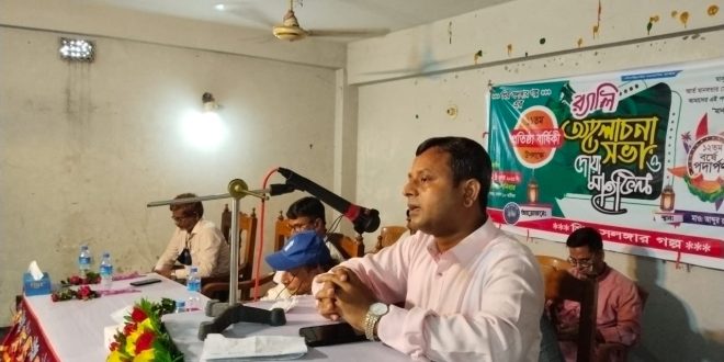 গল্প”র চীফ এডমিন শাহ আলম।অন্যান্যের মধ্যে বক্তব্য রাখেন, ডেপুটি এটর্নি জেনারেল আসাদ উদ্দিন,বিশিষ্ট সাংবাদিক,কবি সৈয়দ শামীম সিরাজী, সহকারি অধ্যাপক মাহবুব জলিল কিরন,মানবতার ফেরিওয়ালা,শাহজাদপুরের কৃতি সন্তান মামুন বিশ্বাস,অধ্যক্ষ মোস্তফা জামান,সংগঠনের উপদেষ্টা আবদুস ছালাম মাস্টার,শিক্ষক হেলাল উদ্দিনসহ অনেকে।বক্তারা বলেন, “প্রিয় সলঙ্গার গল্প” সংগঠন মান সেবায় অনন্য ভুমিকা রেখে চলেছেন । সকলের সহযোগীতায় তারা সমাজের অসহায়,সুবিধাবঞ্চিত মানবজাতির কল্যাণের লক্ষ্যে নিরলস ভাবে প্রচেস্টা চালিয়ে যাচ্ছেন রোগীদের বিনামুল্যে রক্তদান,শীতবস্ত্র বিতরণ,ঈদ সামগ্রী বিতরণ,কন্যাদায়গ্রস্তদের আর্থিক সহযোগীতা,হুইল চেয়ার বিতরণ,টিউবওয়েলের ব্যবস্থা,পিপাসার্তদের শরবতপান,মসজিদ মাদ্রাসায় কোরান, হাদীস বিতরণ,