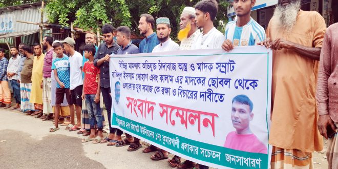 বক্তারা বলেন, কালাম ও সোহাগের মাদকদ্রব্যে নষ্ট হচ্ছে কুমারখালী যুব সমাজ। অস্ত্র, মাদক, চুরি ও চাঁদাবাজির একাধিক মামলা রয়েছে তাদের নামে। তবুও এলাকায় মাদক বিক্রি, চুরি ও চাঁদাবাজি করে প্রকাশ্যে ঘুরে বেড়াচ্ছে। তারা জালটাকার মামলার সঙ্গেও জড়িত। এলাকার অনেক মানুষের ভ্যান, পুকুর থেকে মটর ও ট্রান্সফর্মার চুরি করেছে। টাকার স্বার্থে যেকোনো অন্যায় কাজ করতে পারে তারা। মাদক স¤্রাট ওই পিতাপুত্রের ছোবল থেকে যুব সমাজকে রক্ষা ও তাদের বিচারের দাবিতে দ্রæত প্রশাসনের হস্তক্ষেপ কামনা করেছেন গ্রামবাসী।