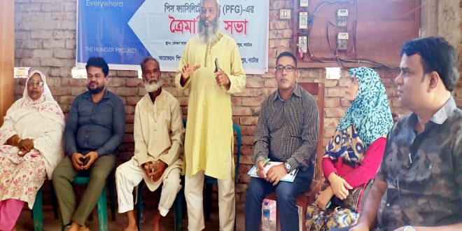 সংঘাত মুক্ত শান্তি ও ঐক্যের বাংলাদেশ গড়ার নিমিত্তে নাটোরের গুরুদাসপুরে পিস ফ্যাসিলিটেটর (পিএফজি) এর ত্রৈমাসিক সভা অনুষ্ঠিত হয়েছে। বুধবার বেলা ১১টায় পিএফজির অস্থায়ী কার্যালয়ে এ সভা হয়।পিএফজির অ্যাম্বাসেডর অধ্যাপক জয়নাল আবেদীন দুলালের সভাপতিত্বে সভায় বক্তব্য রাখেন দি হাঙ্গার প্রজেক্টের ফিল্ড কো-অর্ডিনেটর মনিবুল হাসান, সমন্বয়ক একরামুল হক খোকন, অ্যাম্বাসেডর মো. শাহজাহান আলী, রোকসানা আক্তার লিপি, মজিবুর রহমান মজনু, নির্বাহী সদস্য আলী আক্কাছ ও প্রভাষক সাজেদুর রহমান।অনুষ্ঠানে আগামী ১৫ নভেম্বর পিস সম্মেলন, ২৭ নভেম্বর হারমুনি ফ্যাস্টিভাল, ২০ ডিসেম্বর ওয়েব কনফারেন্স, ২৭ ডিসেম্বর ইয়ুথ কনফারেন্স ও ৩ জানুয়ারী সাংস্কৃতিক অনুষ্ঠান সফল করার সিদ্ধান্ত গৃহিত হয়।