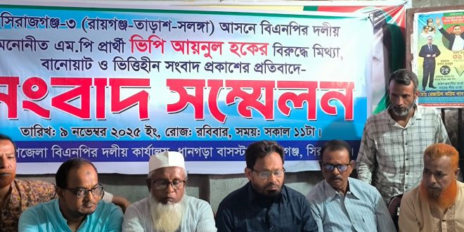 সিরাজগঞ্জ-৩: বিএনপি প্রার্থী ভিপি আয়নুল হকের বিরুদ্ধে ‘মিথ্যা সংবাদ প্রকাশের প্রতিবাদে সংবাদ সম্মেলন