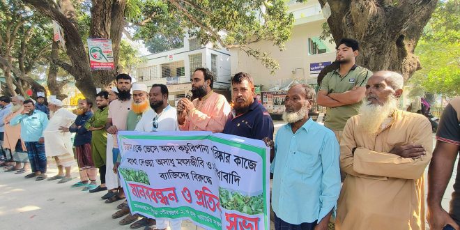 নাটোরের সিংড়ায় উত্তর ও দক্ষিণ দমদমা হিয়ালা বিলের শতাধিক কৃষিজমি থেকে কচুরিপানা অপসারণের কাজে বাধা দেওয়ার প্রতিবাদে মানববন্ধন ও প্রতিবাদ সমাবেশ অনুষ্ঠিত হয়েছে। মঙ্গলবার (১১ নভেম্বর) দুপুরে উপজেলার আমতলা চত্বরে এ কর্মসূচি পালন করেন পৌরসভার ২ ও ৩ নম্বর ওয়ার্ডের ক্ষতিগ্রস্ত কৃষকরা।