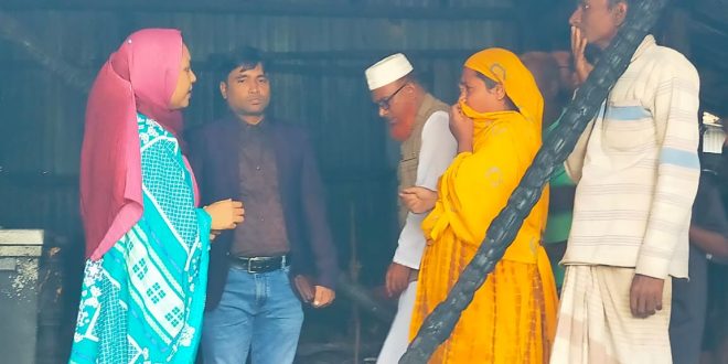 জানা গেছে, গত ২৭ নভেম্বর রাত ১১ টার দিয়ে আগুনের সুত্রপাত। ফায়ার সার্ভিস ও এলাকাবাসীর সহায়তায় আগুন নেভানোর আগেই আলার একমাত্র ঘর ও ঘরের আসবারপত্র পুড়ে ছাই হয়ে যায়। এ সময় ক্ষতিগ্রস্থ পরিবারের সবাই ঘরে তালা দিয়ে গ্রামের ইসলামী জালসা শুনতে গিয়েছিলেন।সবকিছু হারিয়ে ছেলে মেয়ে নিয়ে চার সদস্যের ওই পরিবার মানবেতর জীবনযাপন করছেন। এমন সংবাদে রাশিদ-নিলু ফাউন্ডেশনের পরিচালক রাশিদুল ইসলাম ও রাশ আরবান স্টাইল শপিংমলের মালিক রাসেল হুসাইন নামের দুই আমেরিকা প্রবাসীর মানবিক সহায়তার অর্থে নতুন ঘর নির্মান শুরু হয়েছে।আলাউদ্দিনের স্ত্রী আম্বিয়া বেগম কান্নজড়িত কন্ঠে জানান, ঘরের সবকিছু পুড়ে ছাই। ছেলে-মেয়ে নিয়ে থাকবো কোথায়, খাবো কি? তিনি ইউএনও এবং দুই আমেরিকা প্রবাসীকে সহায়তার জন্য কৃতজ্ঞতা জানান।উপজেলা নির্বাহী কর্মকর্তা (ইউএনও) ফাহমিদা আফরোজ বলেন, ক্ষতিগ্রস্ত ও অসহায় পরিবারকে মানবিক সহায়তা প্রদাণ করা হয়েছে। তিনি গ্যাস সিলিন্ডার, বিদ্যুৎ-আগুনের ব্যবহারে সবাইকে আরও সতর্ক হবার পরামর্শ দেন।