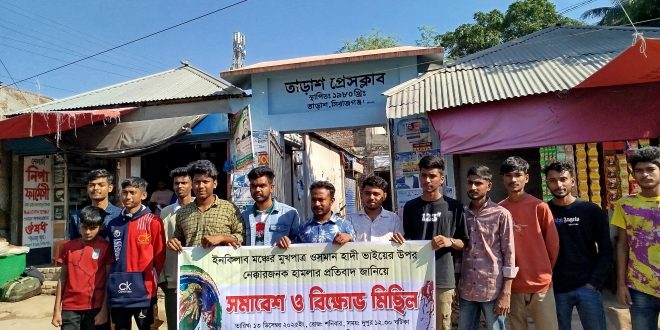 ওসমান হাদীর উপর হামলার প্রতিবাদে তাড়াশে বিক্ষোভ সমাবেশ