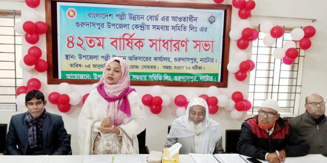 বাংলাদেশ পল্লী উন্নয়ন বোর্ডের আওতাধীন নাটোরের গুরুদাসপুর উপজেলা কেন্দ্রীয় সমবায় সমিতি লিমিটেডের (ইউসিসিএ) ৪২তম বার্ষিক সাধারণ সভা ও বাজেট অধিবেশন অনুষ্ঠিত হয়েছে। অধিবেশনে মোট প্রায় ৭৪ লাখ টাকার বাজেট পেশ করা হয়।