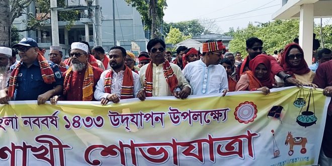 পাবনার ভাঙ্গুড়ায় উৎসবমুখর পরিবেশে শেষ হয়েছে বাংলা নববর্ষ ১৪৩৩ উপলক্ষে আয়োজিত ঐতিহ্যবাহী বৈশাখী শোভাযাত্রা।