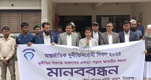স্টাফ রিপোর্টার ঃ সিরাজগঞ্জের তাড়াশে আন্তর্জাতিক দুর্নীতি প্রতিরোধ দিবস- ২০২৪ উপলক্ষে মানববন্ধন ও আলোচনা সভা অনুষ্ঠিত হয়েছে। উপজেলা প্রশাসন ও উপজেলা দুর্নীতি প্রতিরোধ কমিটি এই কর্মসূচির আয়োজন করে। সকাল ১১ টায় প্রথমে উপজেলা পরিষদ চত্বরে অনুষ্ঠিত মানববন্ধনে সংক্ষিপ্ত বক্তৃতা করেন উপজেলা নির্বাহী অফিসার। পরে উপজেলা পরিষদ মিলনায়তনে অনুষ্ঠিত আলোচনা সভায় বক্তৃতা করেন উপজেলা নির্বাহী অফিসার সুইচিং মং মারমা, সাংবাদিক আব্দুল …